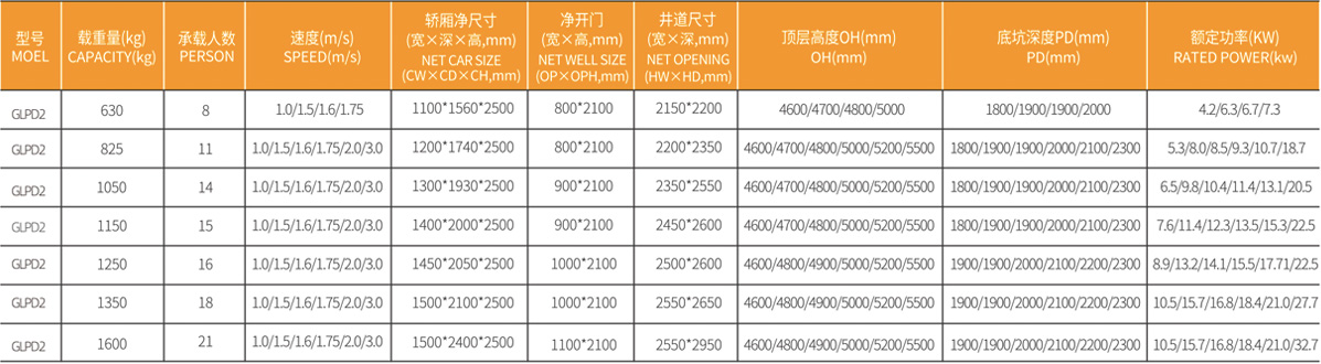 Technical parameters of passenger elevators (with machine room)觀光電梯技術(shù)參數(shù)表